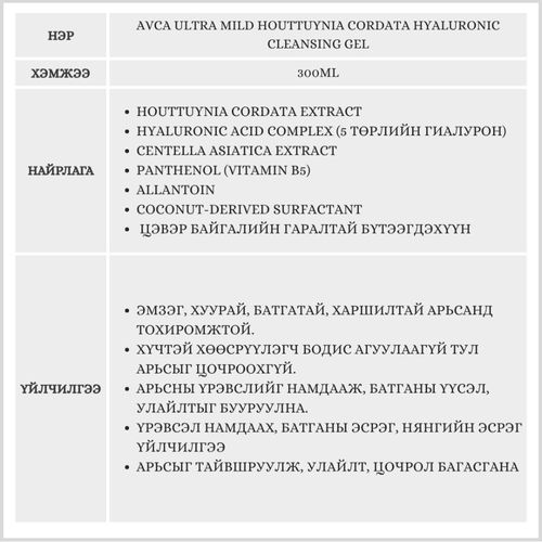 AVCA Ultra Mild Houttuynia Cordata Hyaluronic Cleansing Gel, 300ml
