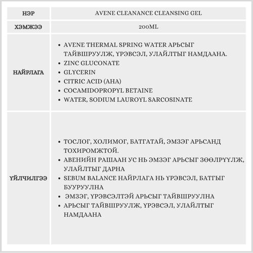 Тослог, холимог, батгатай, эмзэг арьсанд тохиромжтой. Эмзэг арьсыг зөөлрүүлж, улайлтыг дарна. Sebum balance найрлага нь үрэвсэл, батга эмзэгшилийг бууруулдаг.