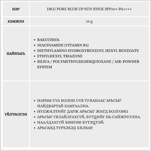 Dr.GDr.G Pore Blur Up Sun Stick SPF50+ PA++++, 19g