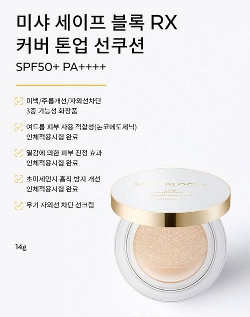 MISSHA Safe Block RX Cover Tone Up Sun Cushion SPF50+ PA++++, 14g
