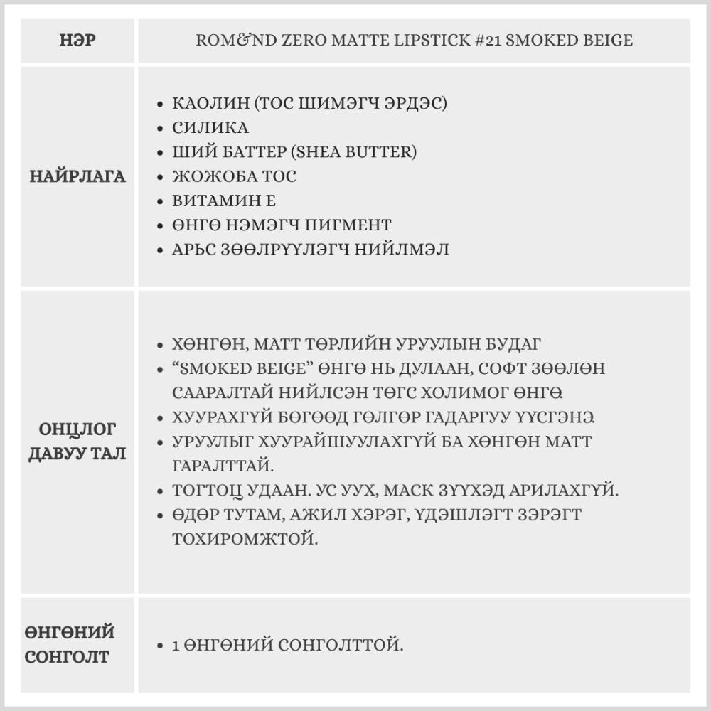 ROM&ND ZERO MATTE LIPSTICK #21 SMOKED BEIGE