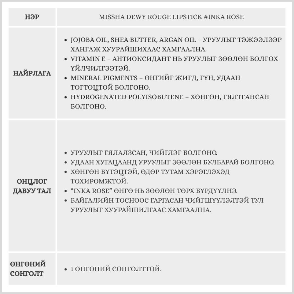 MISSHA DEWY ROUGE LIPSTICK #INKA ROSE