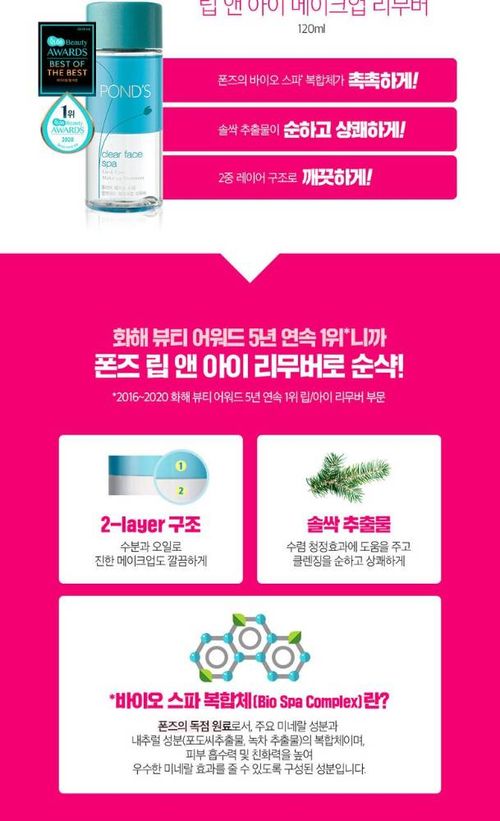 POND’S Clear Face Spa Lip & Eye Makeup Remover, 120 мл