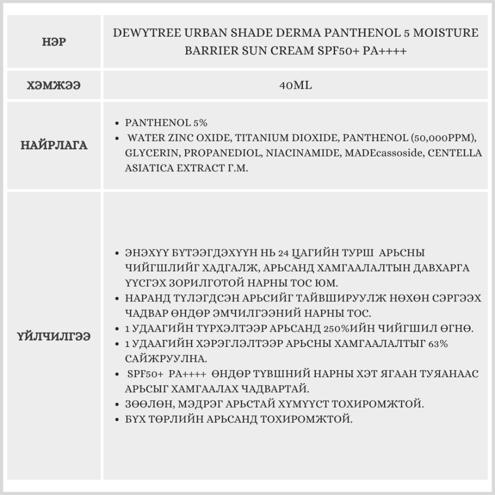 DEWYTREE URBAN SHADE DERMA PANTHENOL 5 MOISTURE BARRIER SUN CREAM SPF50+ PA++++