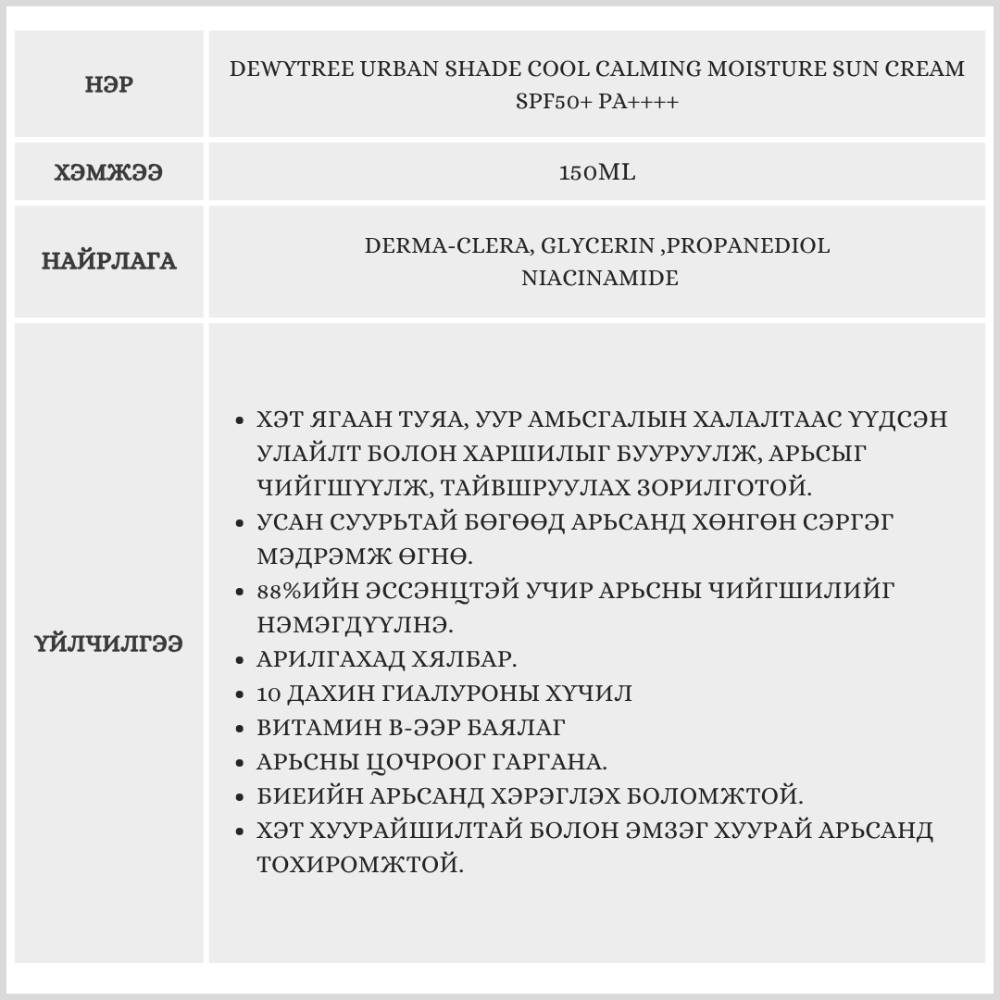 DEWYTREE URBAN SHADE COOL CALMING MOISTURE SUN CREAM SPF50+ PA++++