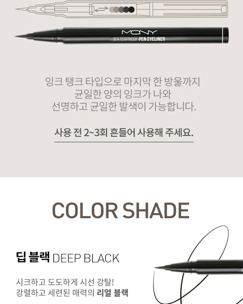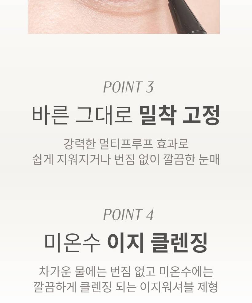 0,01мм хэмжээний маш нарийн уян хатан багстай нүдний контур. Нимгэн багстай тул үс нь салахгүйгээр жигд зурагдах ба тод гаралттай. Ус, хөлсөнд тэсвэртэй хэрнээ бүлээн усаар амархан цэвэрлэх боломжтой.