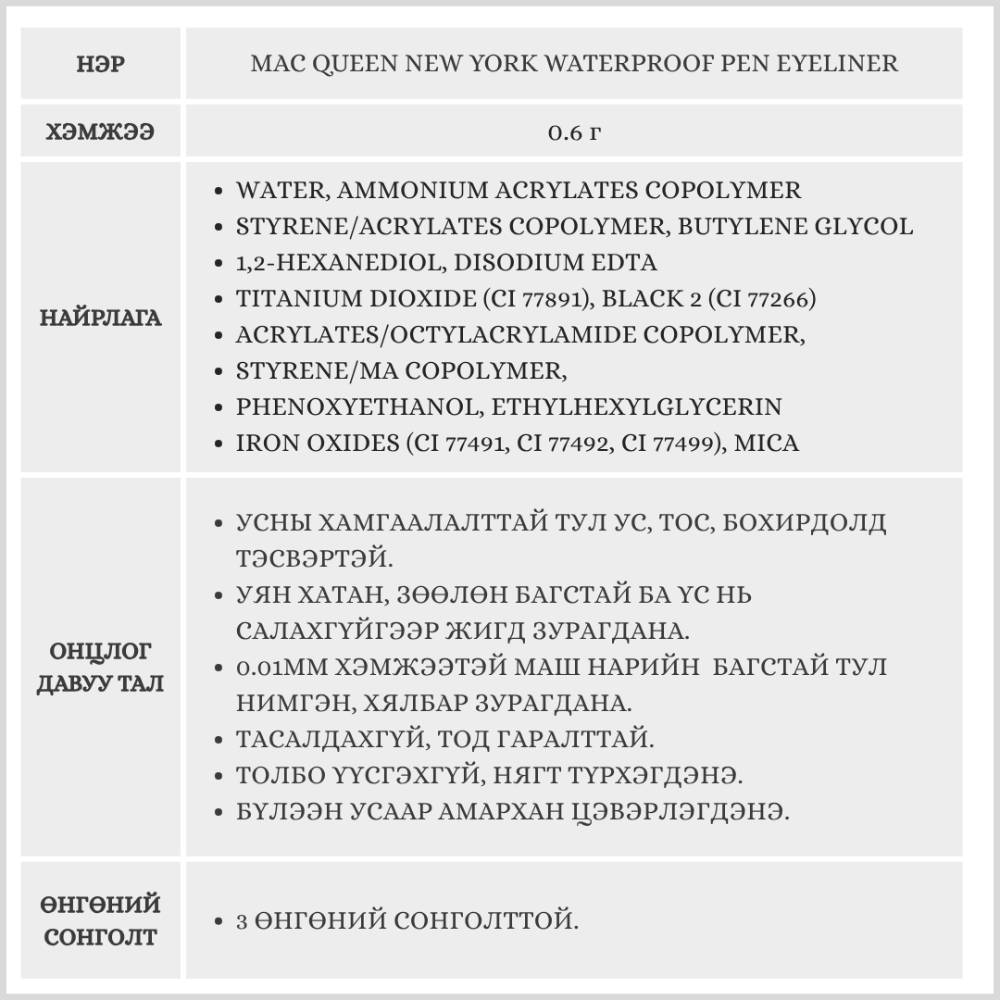 Mac Queen New York Waterproof Pen Eyeliner, 0.6g