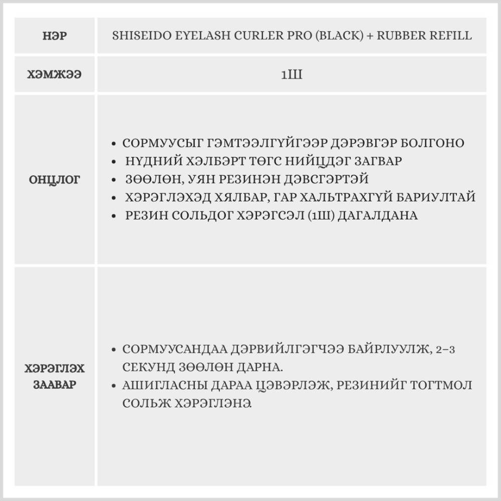 Төгс дэрэвгэр сормуусны нууц — Shiseido Eyelash Curler Pro Ямарч нүдний хэлбэрт төгс тохирох загвартай, сормуусыг гэмтээлгүйгээр дэрэвгэр болгож өгнө. Нарийн хийц, зөөлөн резинэн хэсэг нь сормуусыг жигд өргөж, удаан хугацаанд хэлбэрийг хадгална.