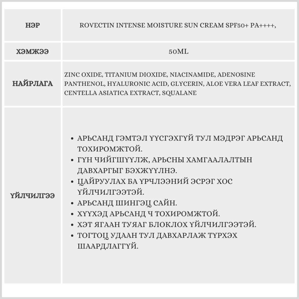 ROVECTIN INTENSE MOISTURE SUN CREAM SPF50+ PA++++