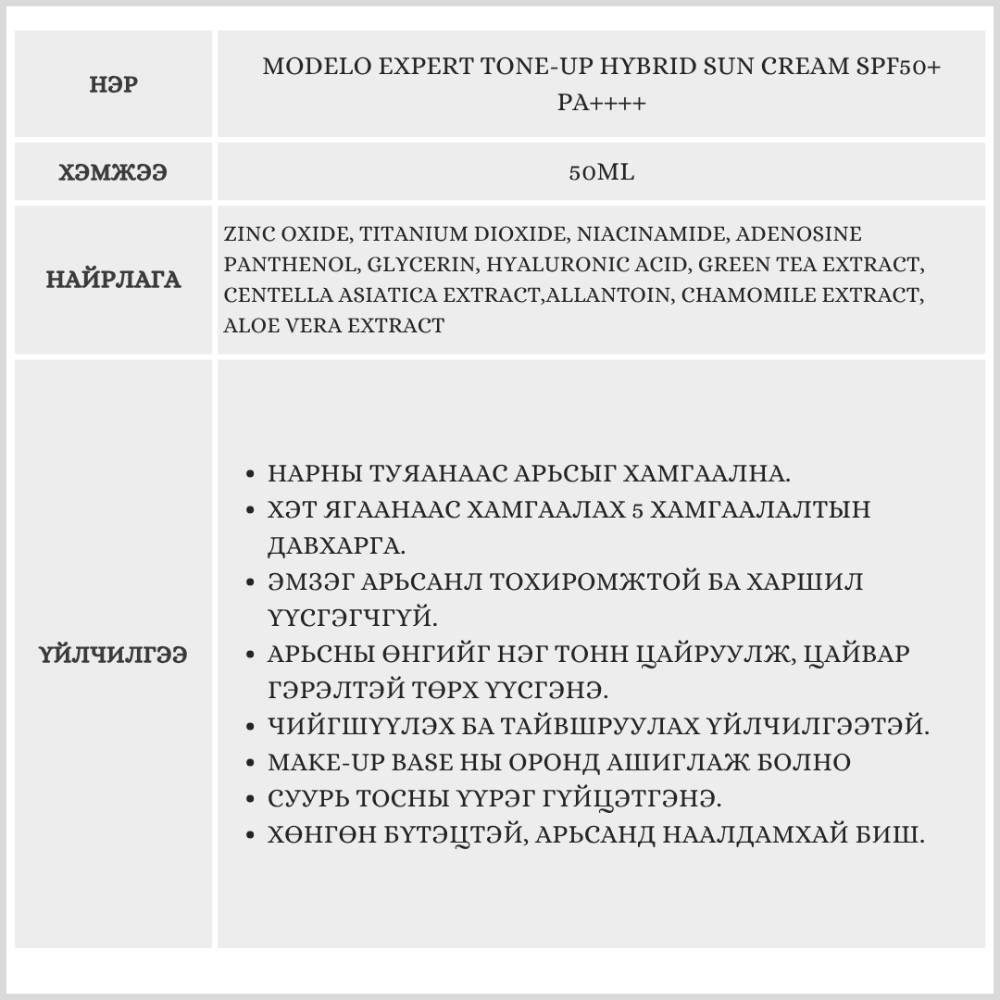 MODELO EXPERT TONE-UP HYBRID SUN CREAM SPF50+ PA++++