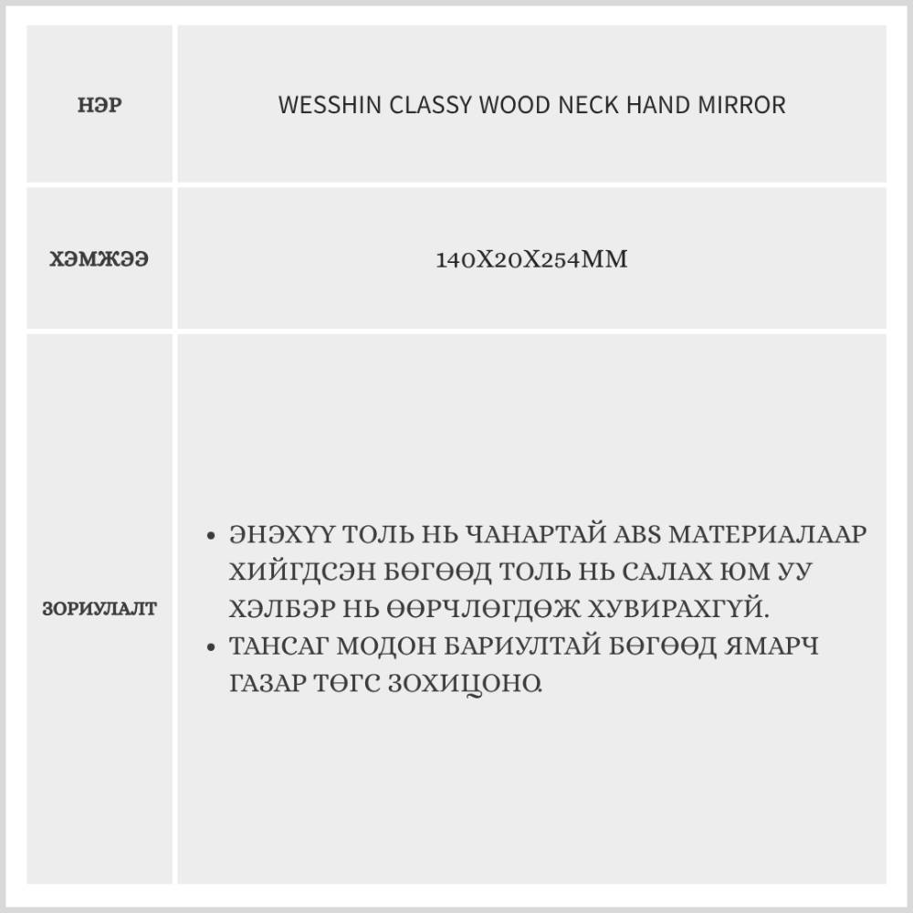 Wesshin Classy Wood Neck Hand Mirror