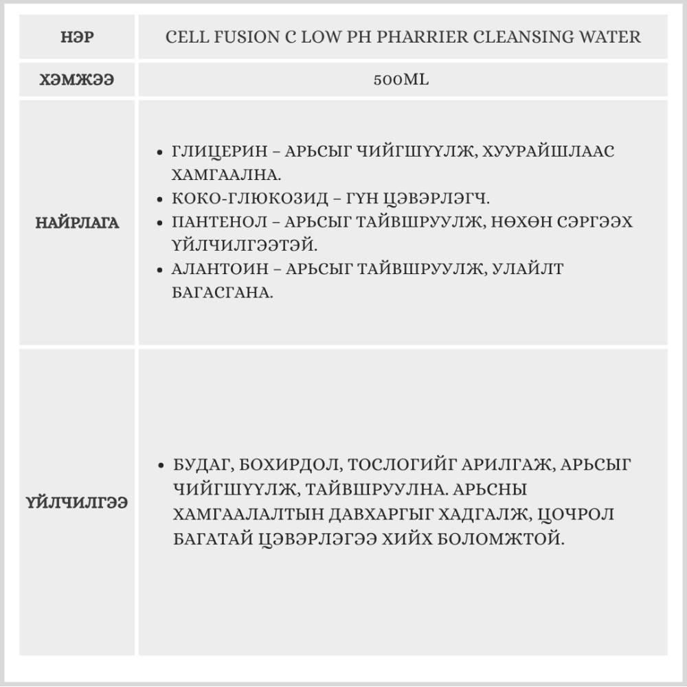 Cell Fusion C Low pH pHarrier Cleansing Water 500ml, 1count