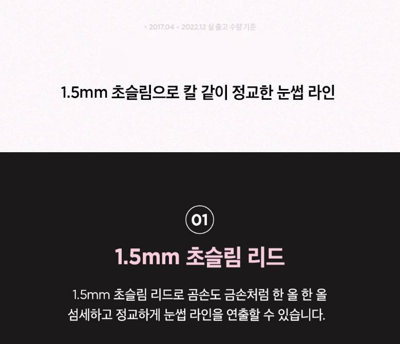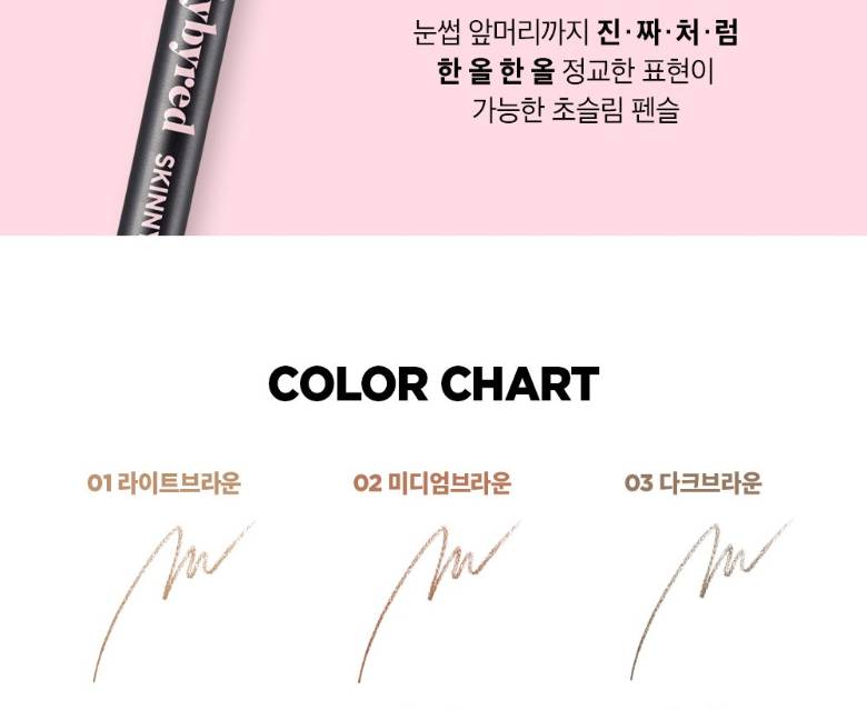 1.5 мм нарийн үзүүртэй тул хөмсгийг үстэй мэт зурах боломжтой хөмсөгний харандаа. Бөөгнөрөхгүй, гаралт сайтай ба удаан тогтоцтой.
