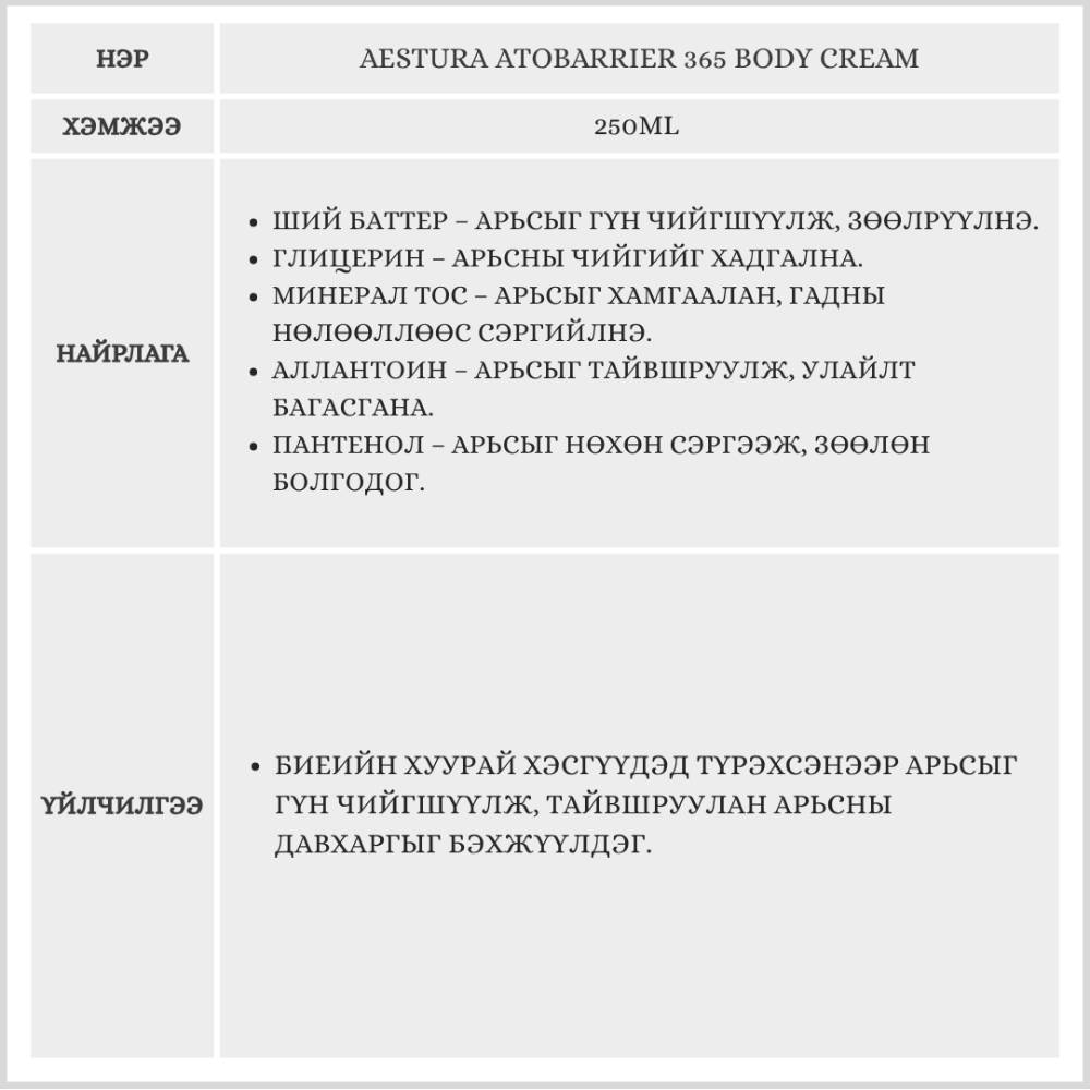 AESTURA Atobarrier 365 Body Cream, 250ml, 1 count