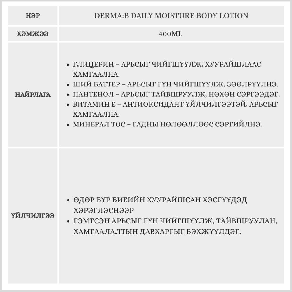 Derma:B Daily Moisture Body Lotion, 400ml, 1 count