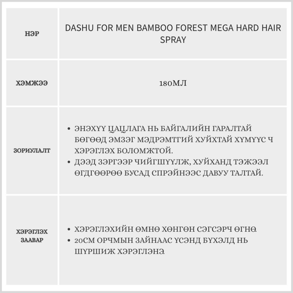 Dashu For Men Bamboo Forest Mega Hard Hair Spray