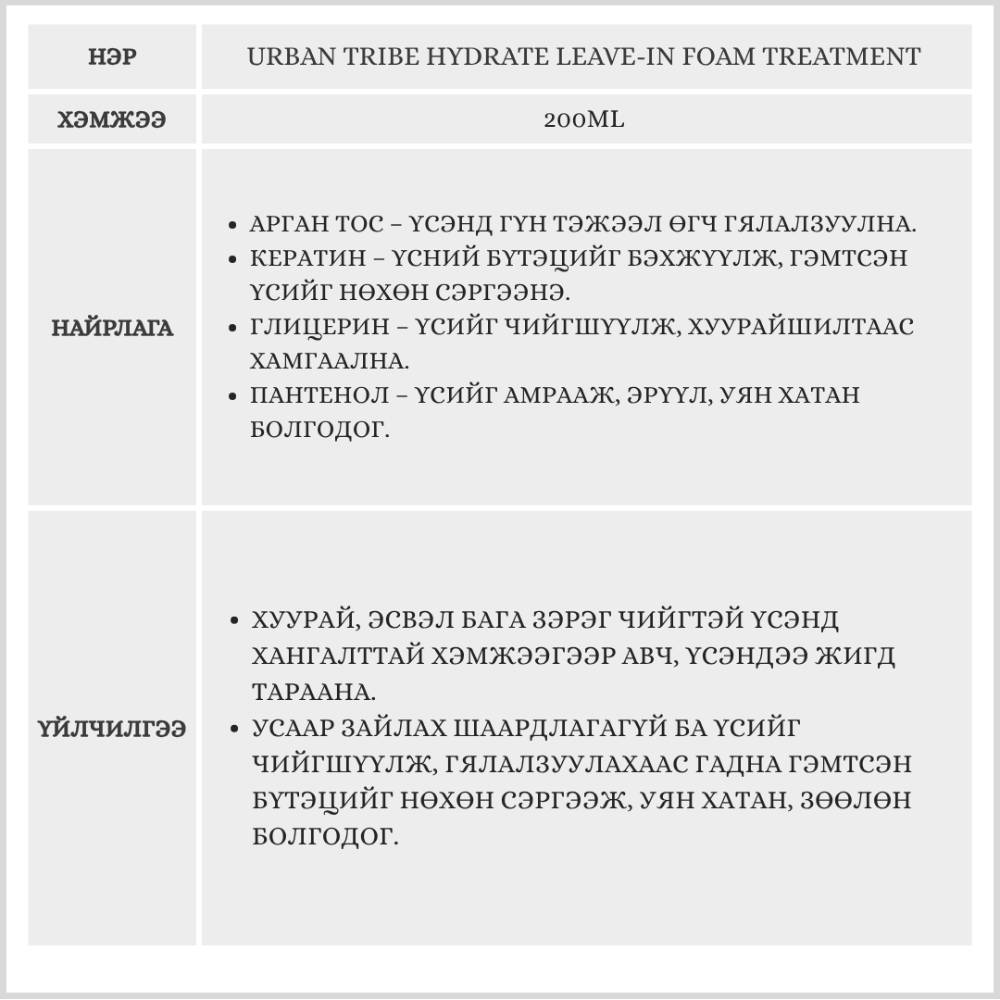 URBAN TRIBE HYDRATE LEAVE-IN FOAM TREATMENT 200ML