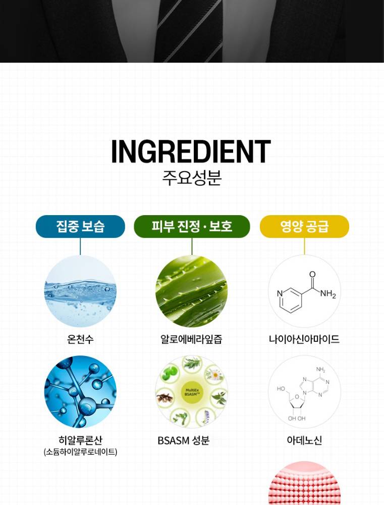 Эрчүүдийн арьсанд зориулсан чийгшүүлэх, тайвшруулах, нөхөн сэргээх үйлчилгээтэй олон үйлдэлт лосьон юм. Нэг алхмаар тонер, эссэнц, лосьоны үүргийг гүйцэтгэж, арьсыг цэвэрхэн, зөөлөн, толигор болгоно.