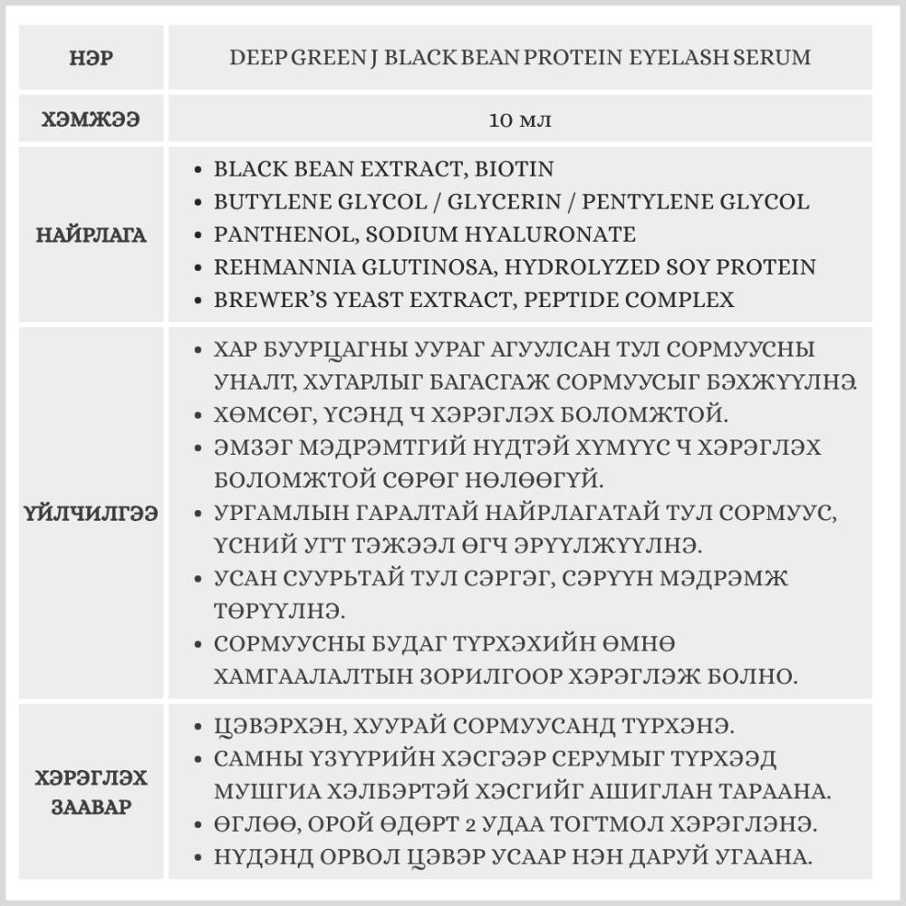Deep Green J Black Bean Protein Eyelash Serum, 10ml