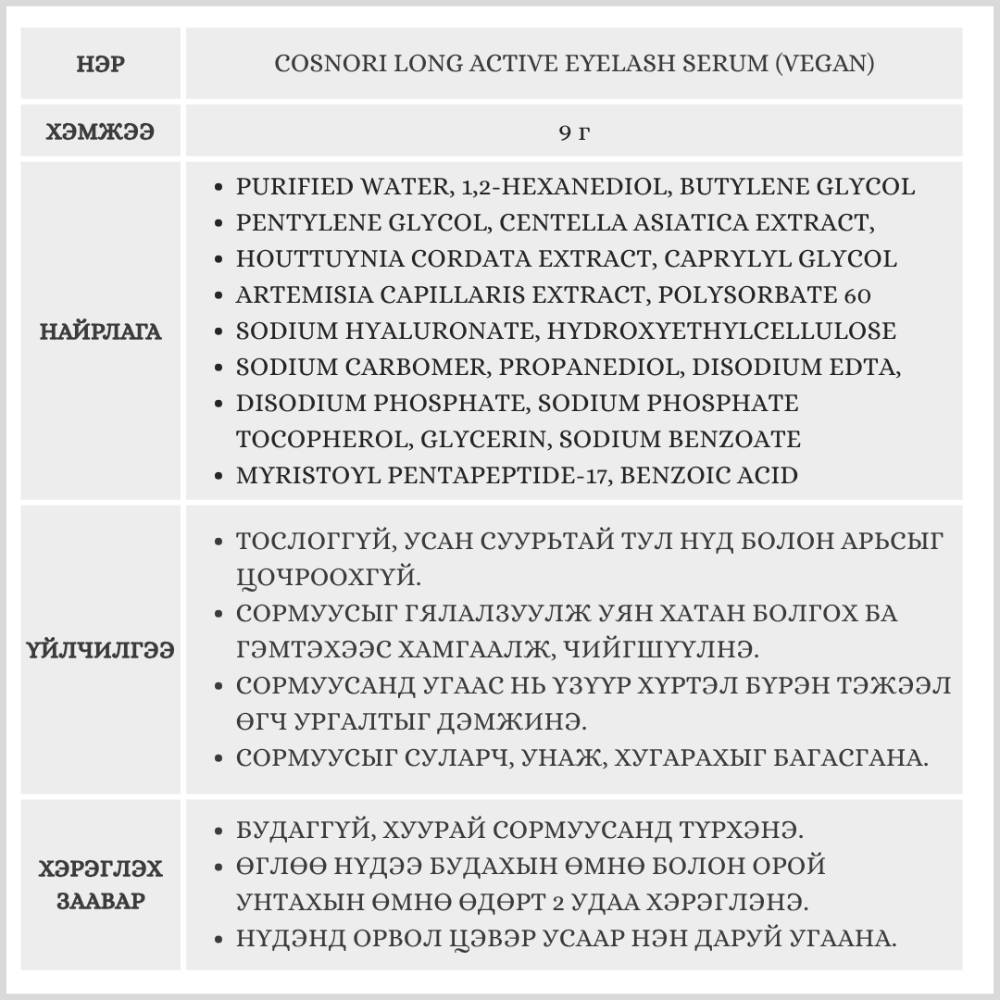 Сормуусыг уртасгаж бэхжүүлэх веган серум. Нулимстай ижил PH хэмжээтэй тул нүд болон арьсыг цочроохгүй. Сормуусны угаас нь чийгшүүлж тэжээл өгнө.