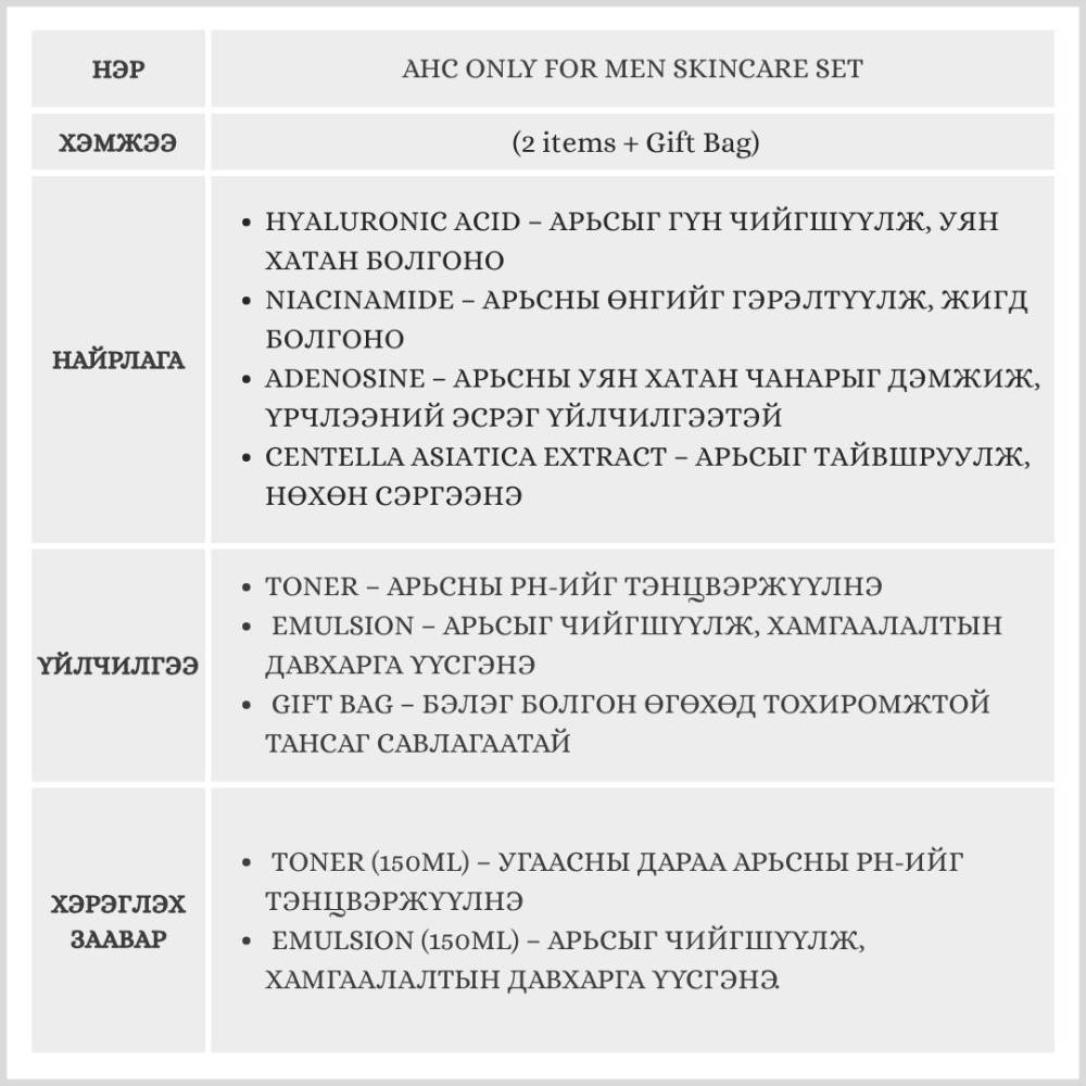 AHCAHC Only for Men Skincare Set 2 items + Gift Bag(Эрэгтэй нүүрний арьс арчилгаа)