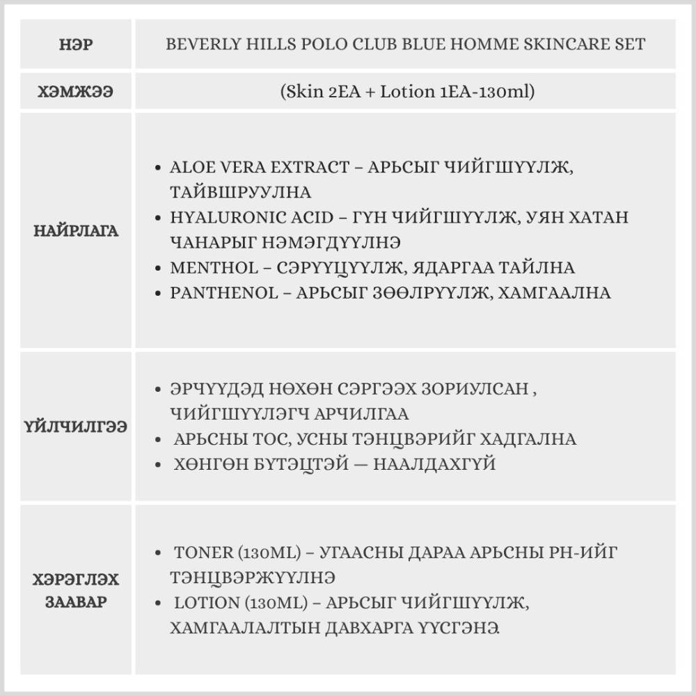 Beverly Hills Polo Club Blue Homme Skincare Set Skin 2EA + Lotion 1EA(Эрэгтэй нүүрний арьс арчилгаа)
