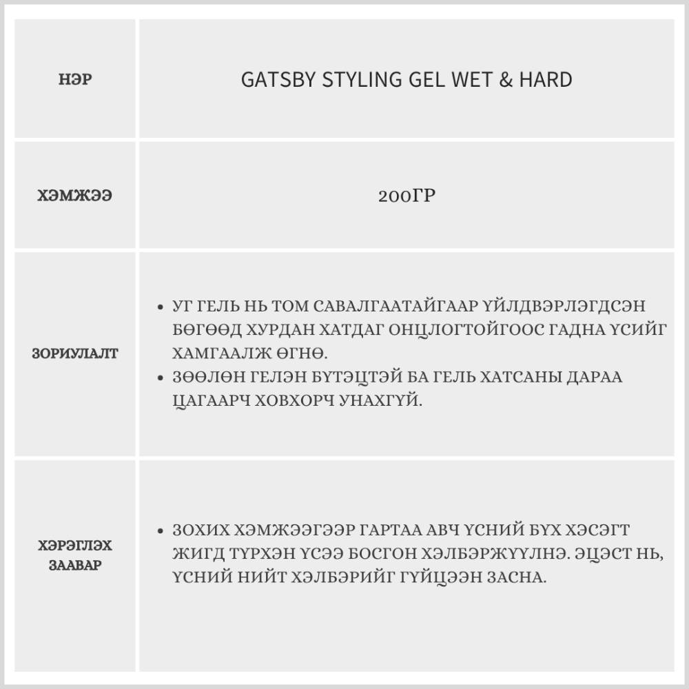 Уг гель нь хатсаны дараа цагаарч ховхорч унахгүй ба хурдан хатдаг онцлогтой. Үсийг гэмтээхгүй бөгөөд том савалгаатайгаар хийгдсэн.Үсийг хурдан хугацаанд хүссэн хивэнд оруулах боломжтой.