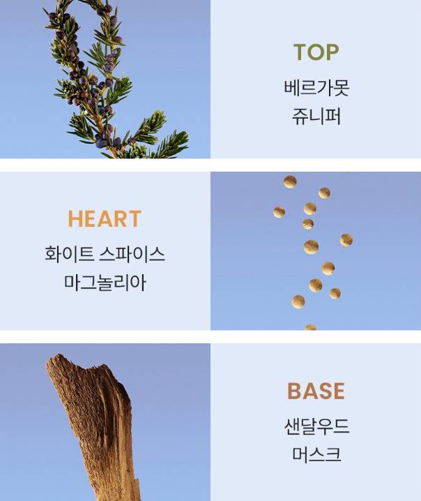 Уг үнэртэн нь эрч хүч, цэвэр байгаль болон дотоод амар амгаланг мэдрүүлэх анхилуун үнэртэй бүтээгдэхүүн юм. Энэхүү үнэртэн нь сэргэг үнэрээр эхэлж, зөөлөн дулаан үнэрээр үргэлжилнэ. Харин удах тусам дулаахан анхилам үнэр л үлдэж, таныг тайвшруулж, дотно мэдрэмж төрүүлнэ.