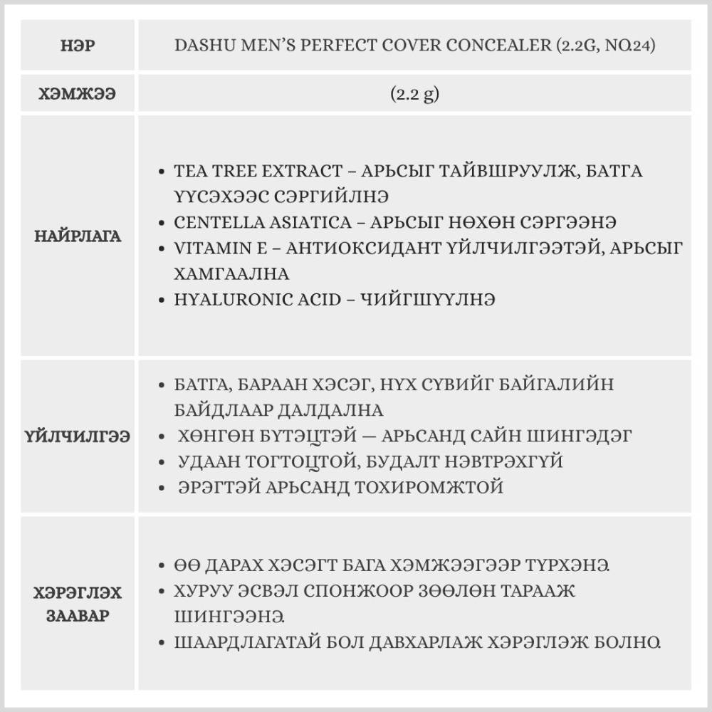 DASHUDashu Men’s Perfect Cover Concealer 2.2g, No.24(эрэгтэй/өө дарагч/)