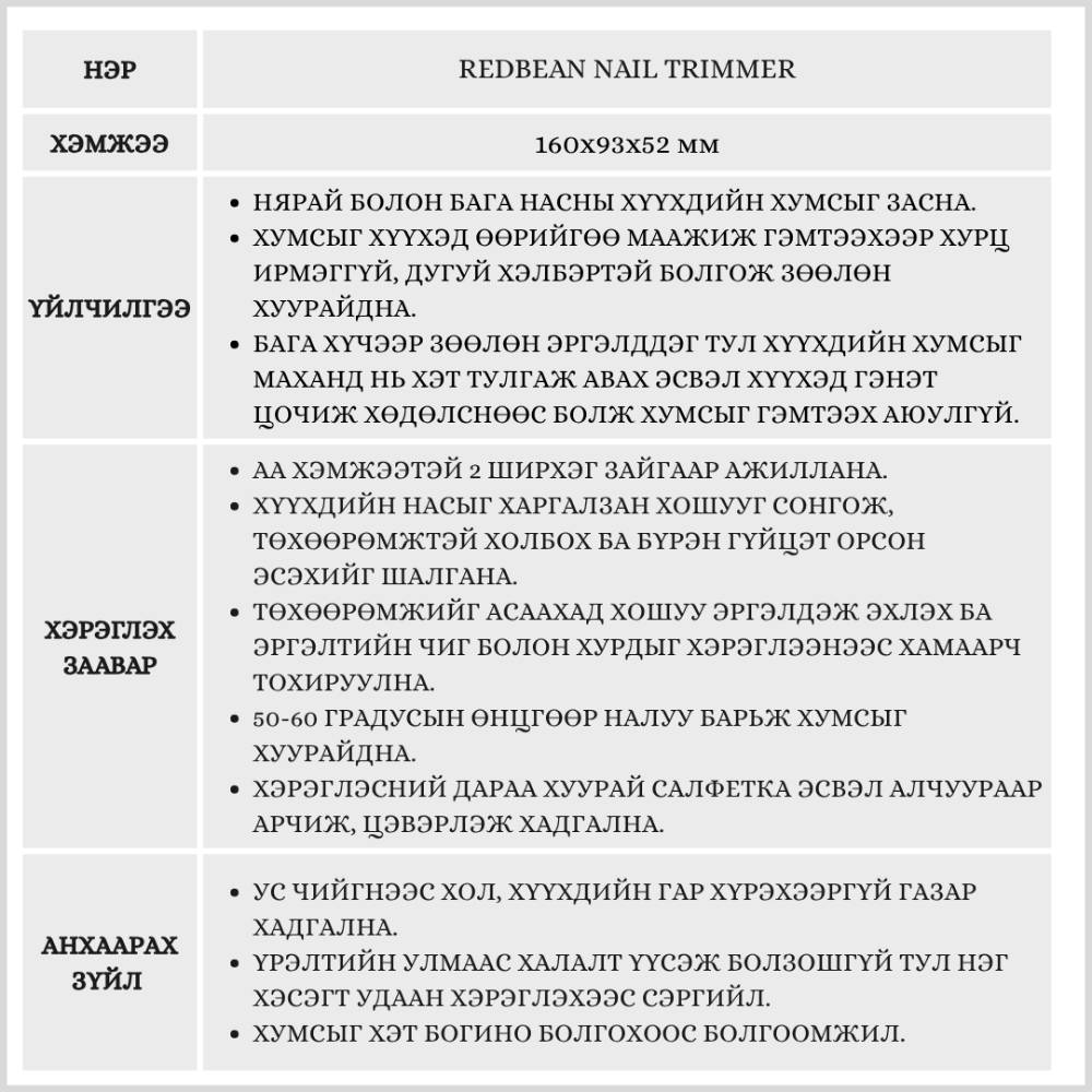 Redbean Nail Trimmer (Хүүхдийн хумс засах зориулалттай)