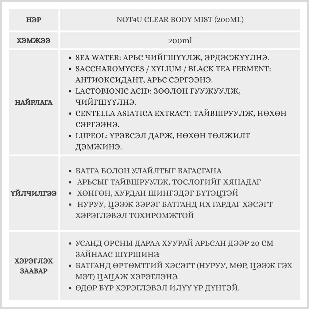 NOT4U Clear Body Mist 200ml(Биеийн тос/мист)