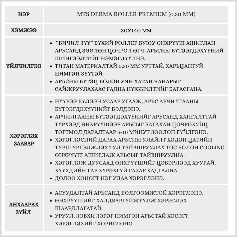 Арьс арчилгааны бүтээгдэхүүний шингэцийг сайжруулах "бичил зүү" бүхий өнхрүүш. Арьсанд бага зэргийн цочрол өгөх замаар арьсны бүтэц болон уян хатан чанарыг сайжруулна.