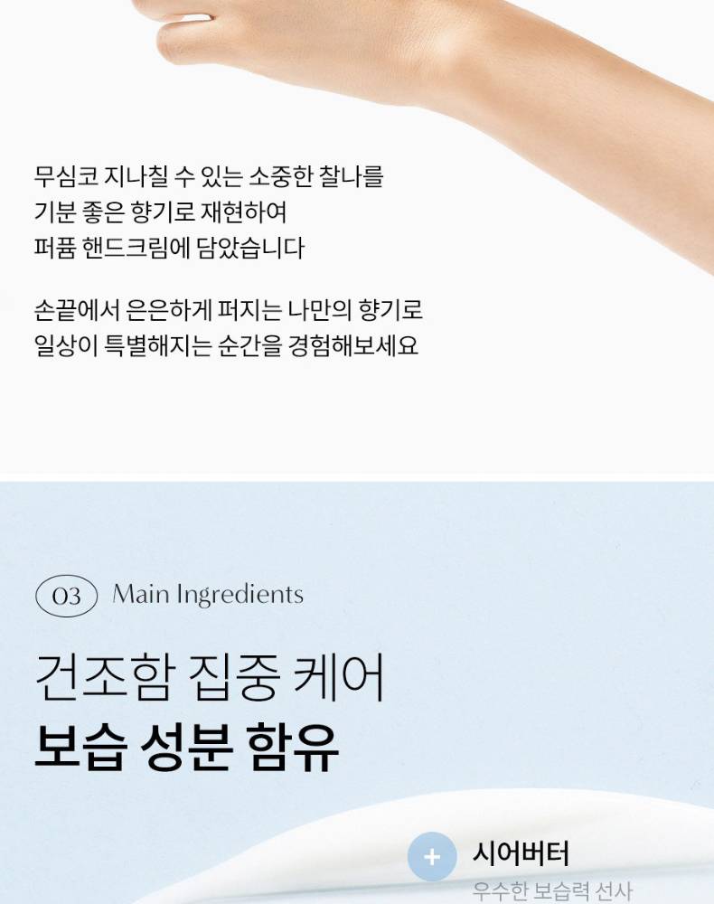 Зөөлөн, анхилуун үнэртэй, арьсыг гүн чийгшүүлж, тэжээл өгдөг гарын тос юм. Хөнгөн бүтэцтэй тул тослог мэдрэмж үлдээхгүйгээр шингэлт сайтай, гарын хуурайшилтыг бууруулна.