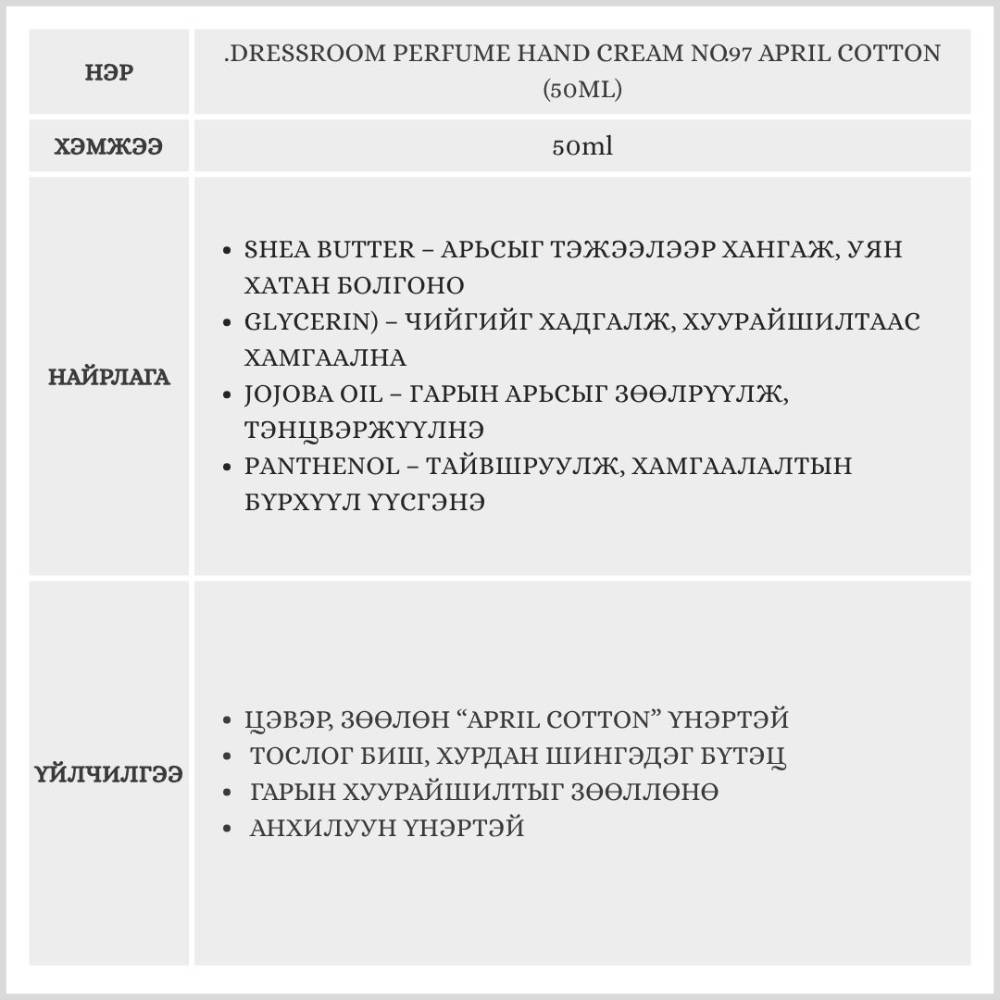 DRESSROOM Perfume Hand Cream No.97 April Cotton 50ml(Гарын тос)