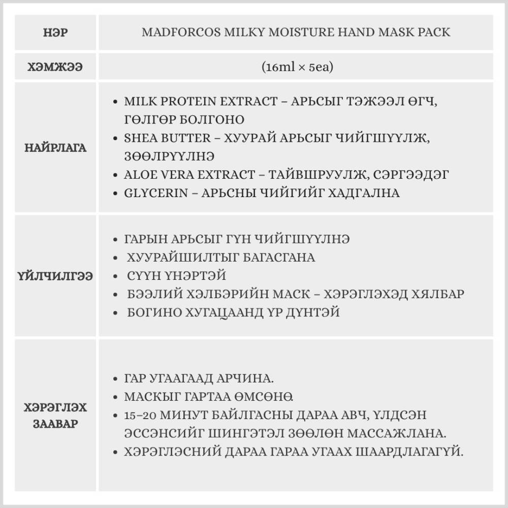 Madforcos Milky Moisture Hand Mask Pack (16ml × 5ea)