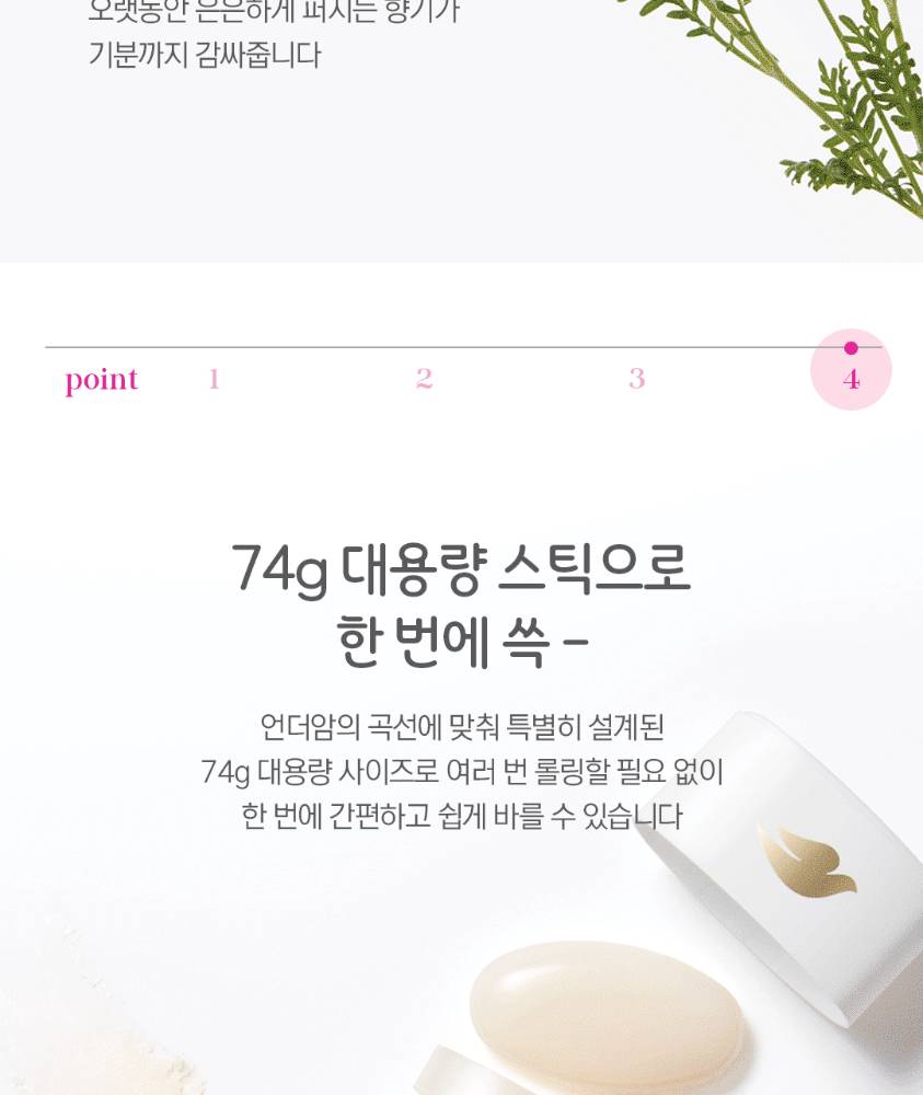 Зөөлөн бөгөөд байгалийн анхилам үнэртэй энэхүү хөлс дарагч нь витамин агуулдаг ба харшил өгдөг 3төрлийн бодисыг агуулаагүйгээрээ давуу талтай. Хөлсний үнэрийг төгс дарж таатай мэдрэмж төрүүлнэ.