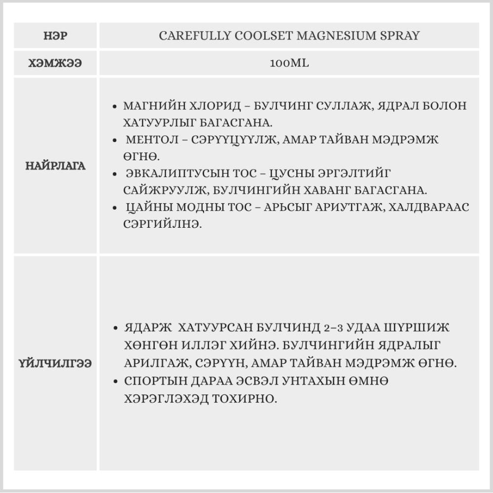 CAREFULLY COOLSET MAGNESIUM SPRAY, 100ML
