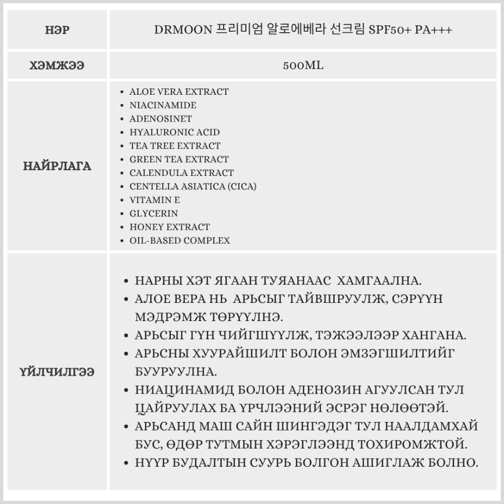 DRMOON ALOE VERA SUNCREAM SPF50+ PA+++