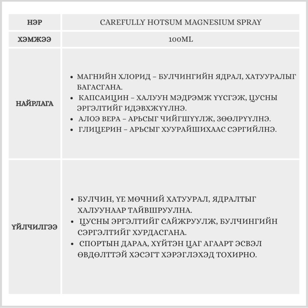 CAREFULLY HOTSUM MAGNESIUM SPRAY 100ML