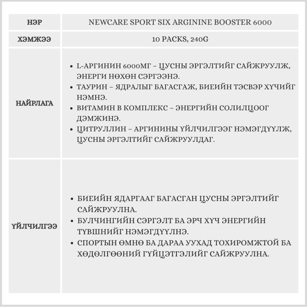 NEWCARE SPORT SIX ARGININE BOOSTER 6000, 10 PACKS, 240G