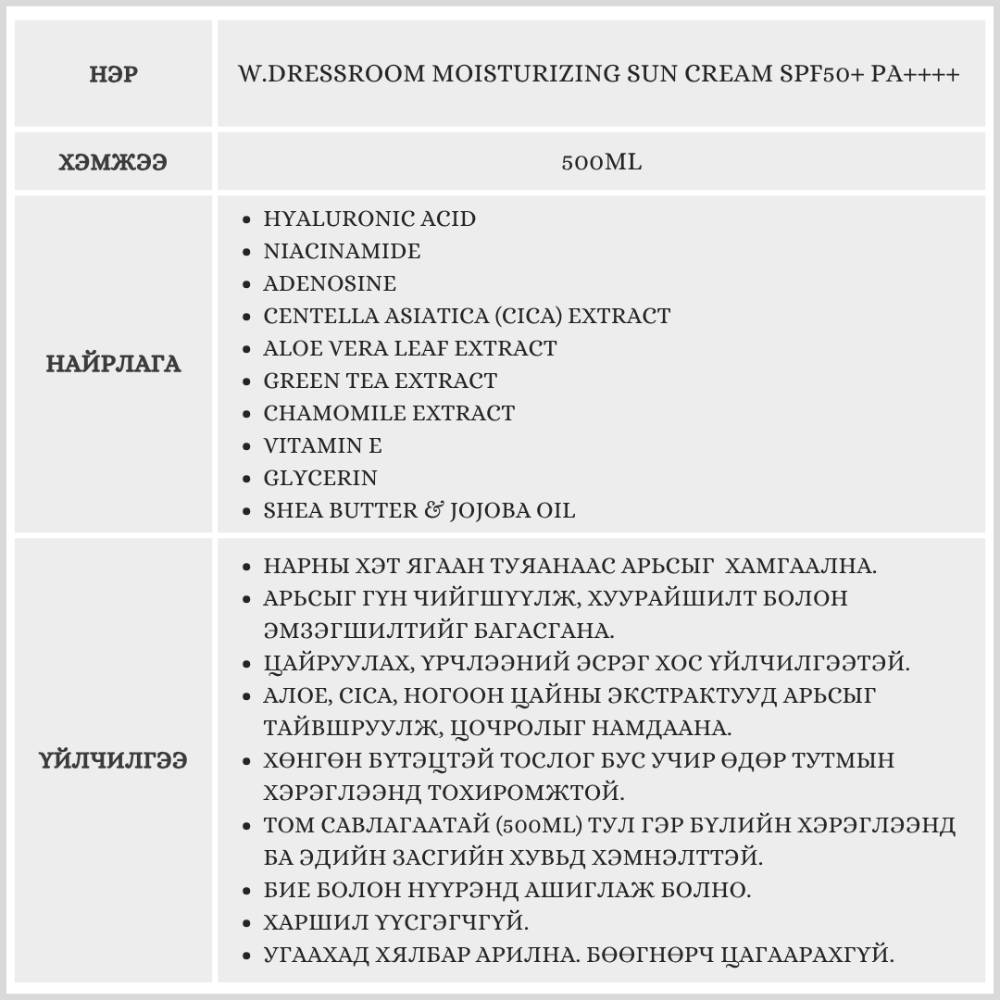 W.DRESSROOM MOISTURIZING SUN CREAM SPF50+ PA++++