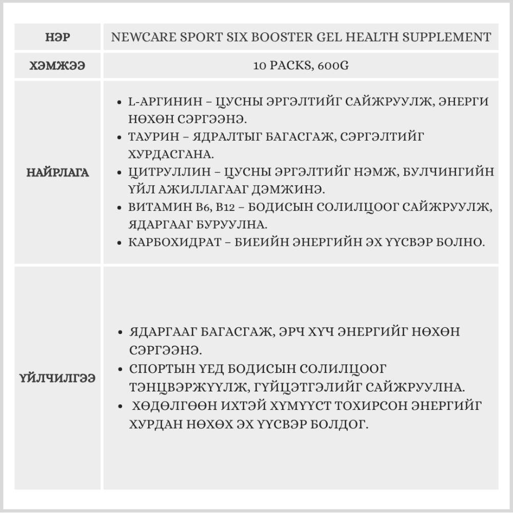 NEWCARE SPORT SIX BOOSTER GEL HEALTH SUPPLEMENT, 10 PACKS, 600G