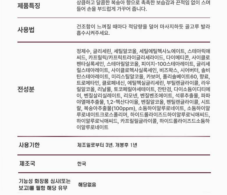 Гүн чийгшүүлэх, зөөлрүүлэх, тэжээл өгөх үйлчилгээтэй гарын тосны сет юм. Тоорны хэлбэртэй савлагаа нь бэлэг болгон өгөхөд хөөрхөн гоёмсог. Хуурай, ядарсан гарын арьсыг чийгшүүлж, зөөлөн, булбарай болгоно.