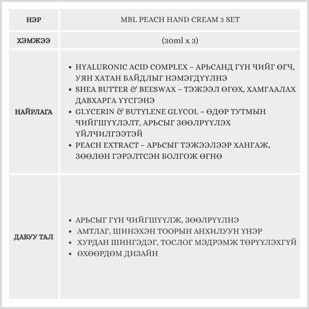 MBL Peach Hand Cream 3 Set(Гарын тос)