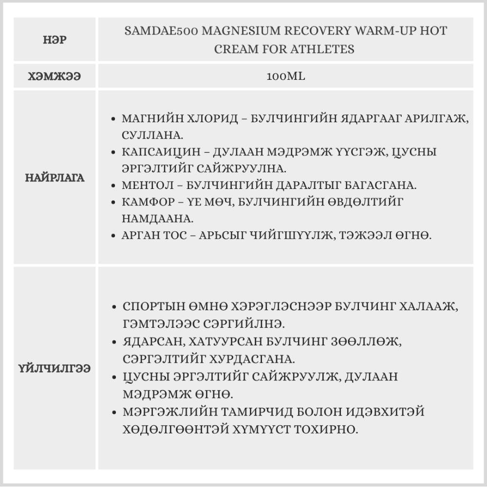 SAMDAE500 MAGNESIUM RECOVERY WARM-UP HOT CREAM FOR ATHLETES 100ML