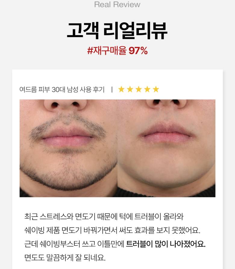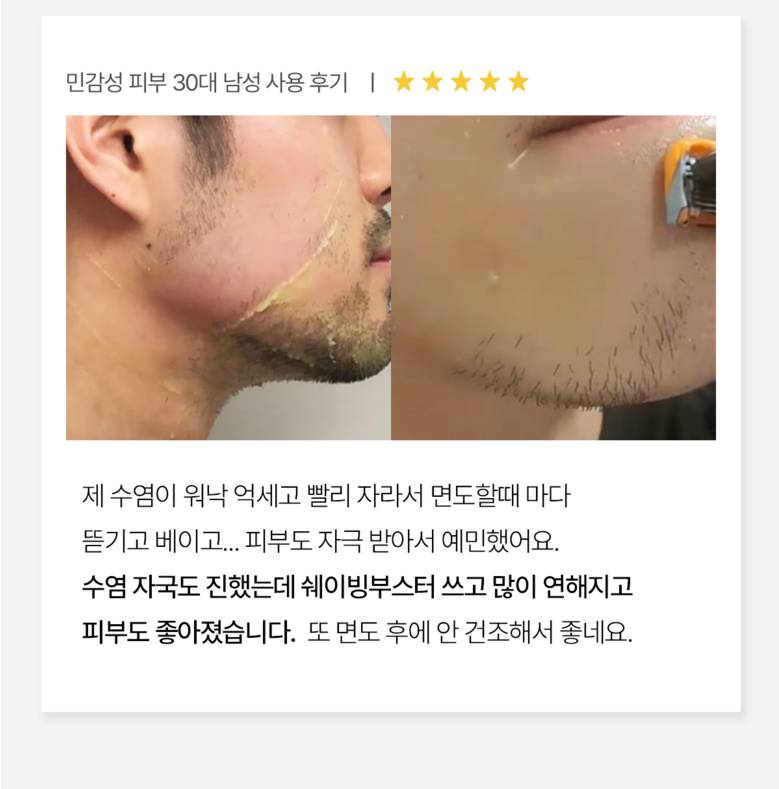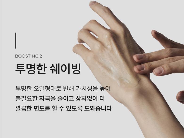 Арьсыг цочроохгүй, тайвшруулах үйлчилгээтэй сахлын booster тос. Хамгаалалтын давхарга үүсгэж, арьсыг гөлгөр болгосноор сахал хусах үед арьсыг зүсэж, гэмтээхээс сэргийлнэ. Давхар арьсыг чийгшүүлж тэжээл өгөх нэмэлт үйлчилгээтэй.