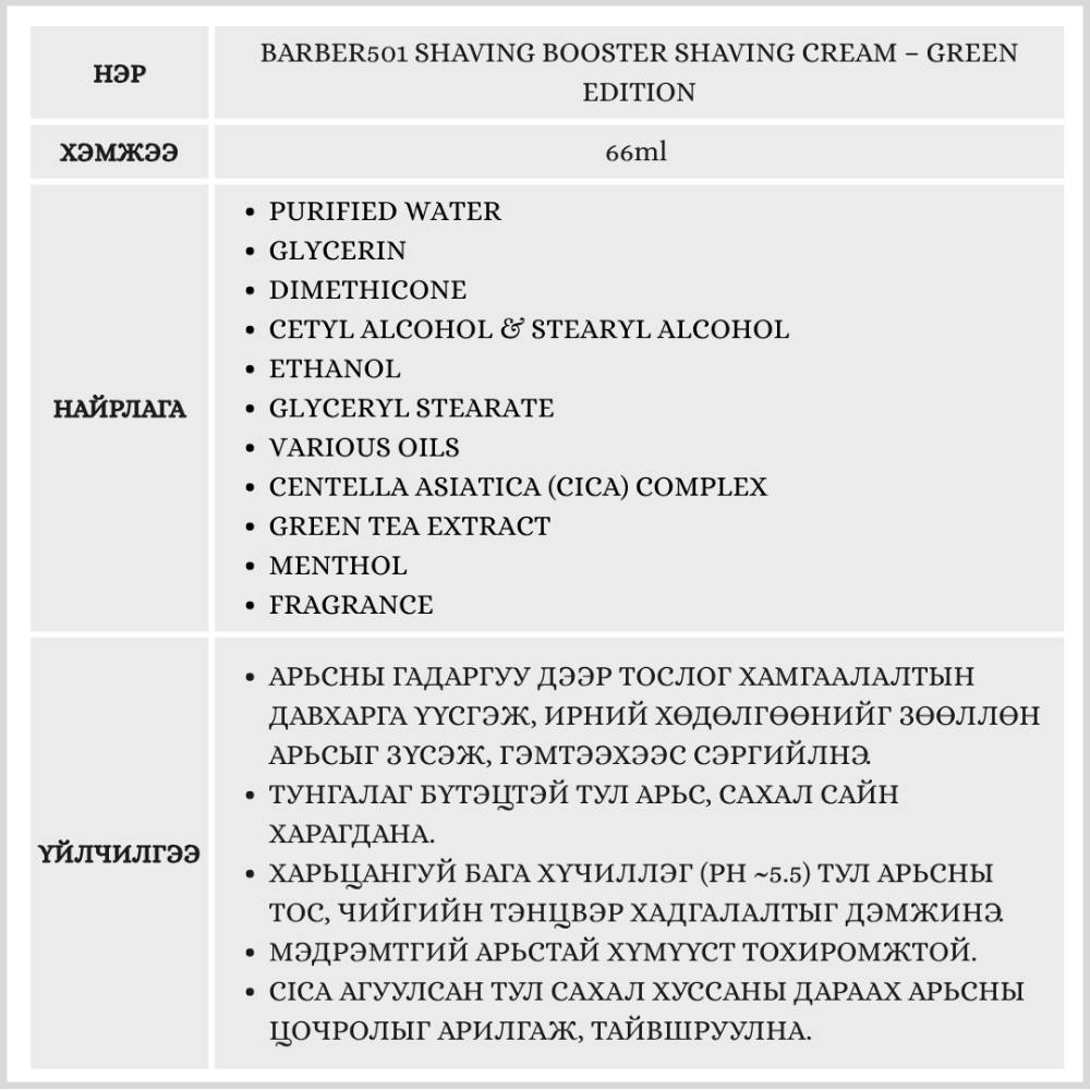 BARBER501 Shaving Booster Shaving Cream – Green edition, 66ml