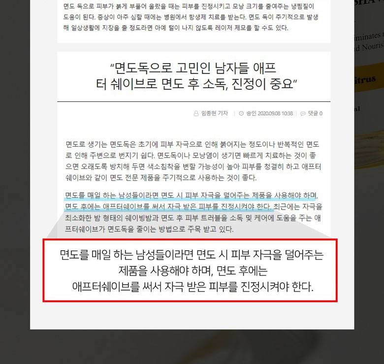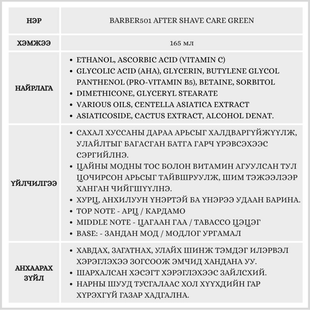 Сахал хуссаны дараа арьсыг халдваргүйжүүлж тайвшруулах aftershave арьс арчилгааны шингэн. Арьсыг шим тэжээлээр хангахаас гадна удаан тогтоцтой анхилуун үнэртэй.