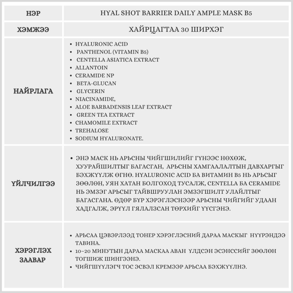 HYAL SHOT BARRIER DAILY AMPLE MASK B5