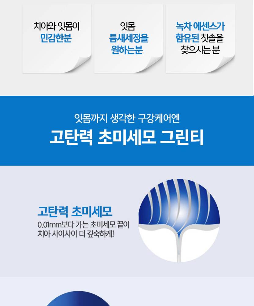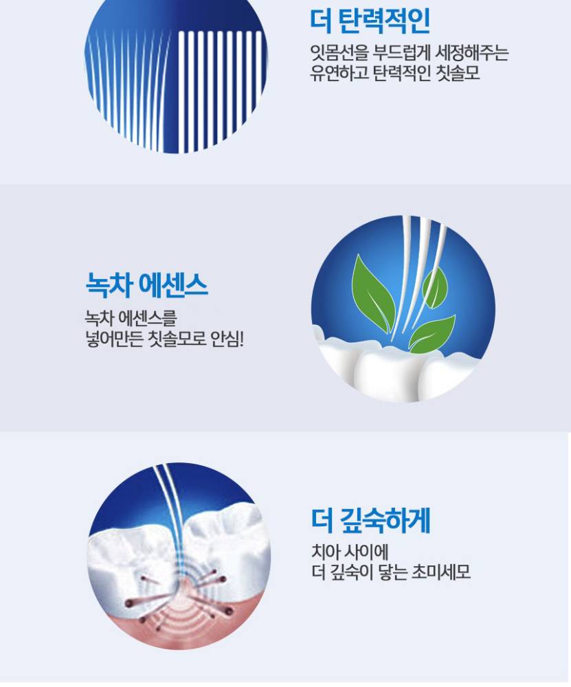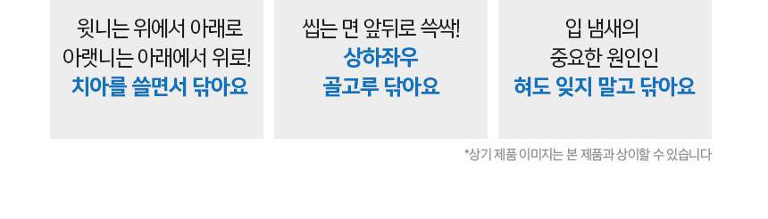 Ногоон цайны хандтай, уян хатан үстэй шүдний сойз бөгөөд буйланд зөөлөн хүрч, өнгөр болон үлдэгдэл бохирдлыг гүн цэвэрлэнэ. Ногоон цайны найрлага нь антисептик үйлчилгээтэй тул амны хөндийн таагүй үнэрийг багасгаж, эрүүл байдлыг хадгална.